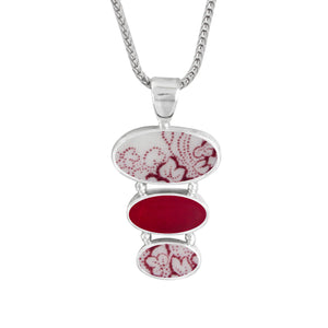 Both pottery and genuine sea glass are shaped to meet our designs and meticulously had set into 3 grams of sterling silver. Now available in Vintage Red, Lavander & Green