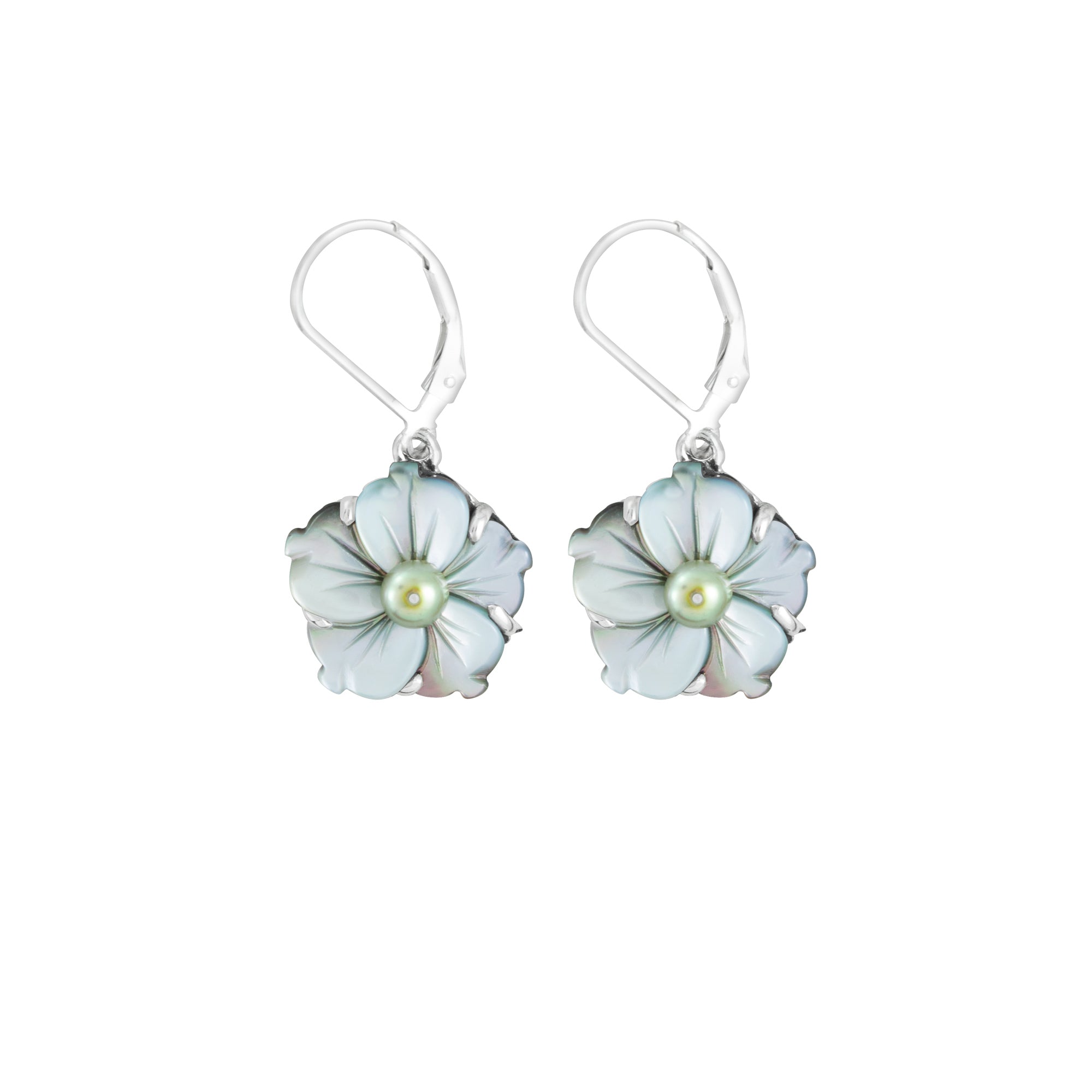 Sterling Silver Pink Carved Flower Stud Earring With Euro Back, Bead Pearl Pink Centre Drill 3.5-4mm : 2 pcs, Mother of Pearl Flower Pink 15mm : 2 pcs, Grams / Silver : 2,5 gr, Total Weight :  Gram